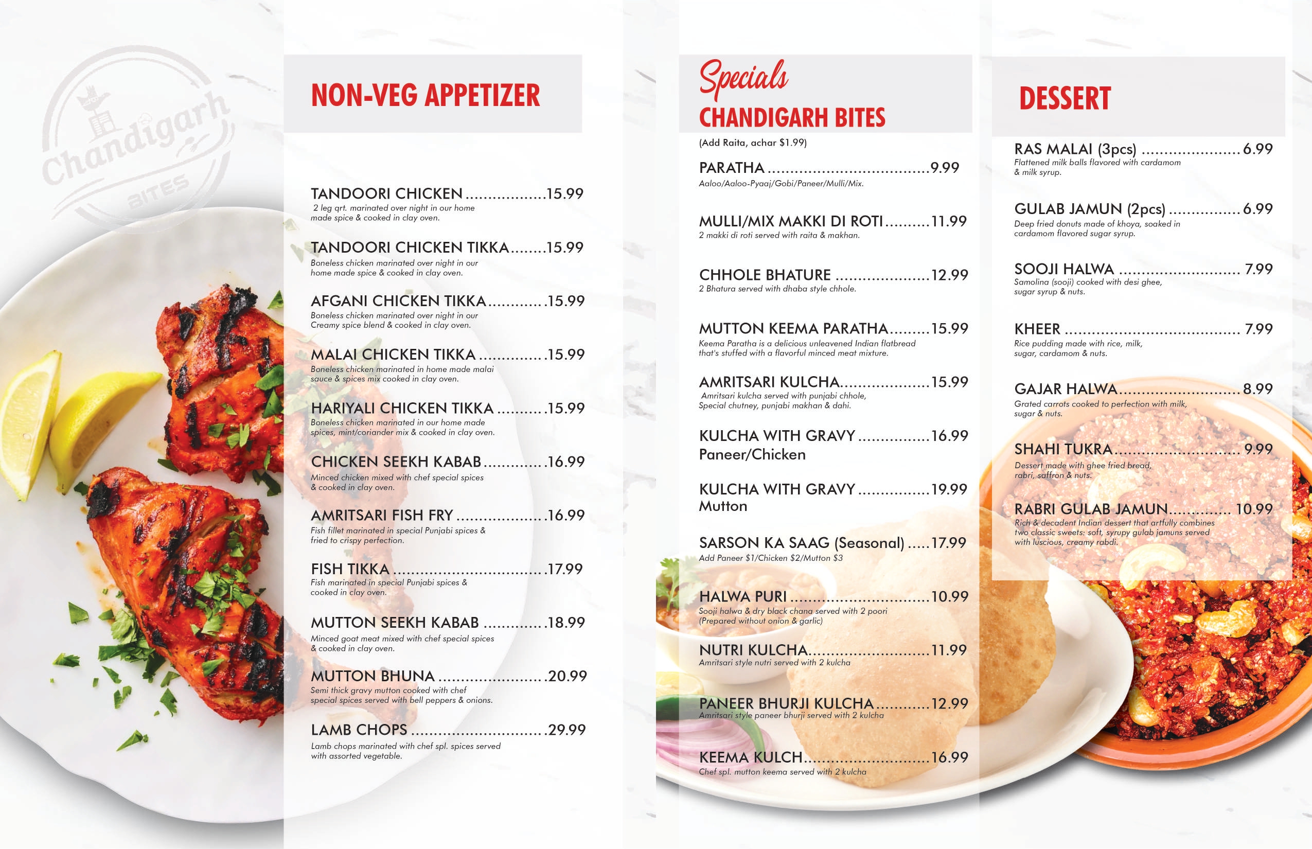 Enjoy our chef’s handpicked dish of the day, made fresh with rich Indian spices and pure desi love. A new flavour every day, only at Chandigarh Bites!