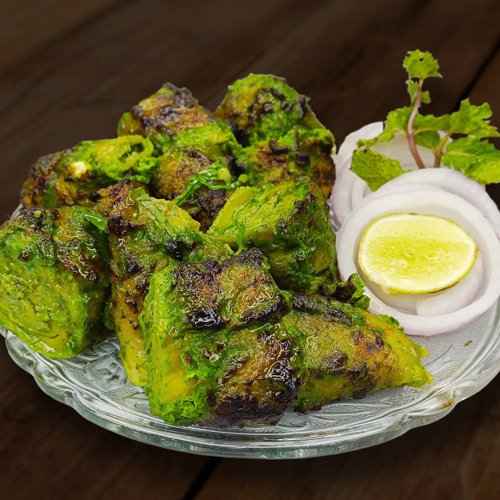 Chandigarhbites Hariyali Soya Chaap is a flavorful vegetarian starter made with soft soya chaap marinated in a fresh green paste of mint coriander and herbs. Grilled to perfection this chaap delivers a refreshing herby aroma with a mild smoky finish and juicy texture.
