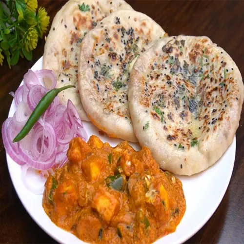 Chandigarhbites Kulcha with Gravy is a hearty and satisfying Punjabi meal served with soft buttery kulcha paired with rich flavorful gravy of your choice paneer or chicken. The kulcha is lightly crisp outside and soft inside perfectly soaking up the delicious masala gravy.